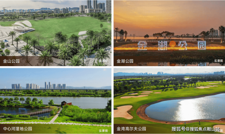 金湾金山公园、金湾金湖公园、金湾中心河湿地公园、金湾海岸线、金湾情侣路、金湾高尔夫