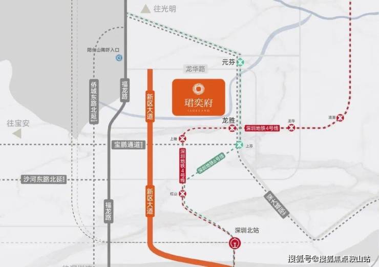 干道:福龙路快速路,畅达福田中心;侨城东路北延(在建中)、沙河东路北延(规划中)、宝鹏通道(规划中)畅达南山、宝安,节省约20%通勤效率。