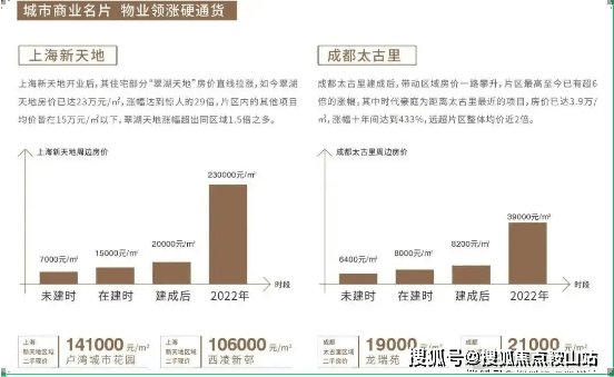 · 城市商业综合体一般出现在商业较发达的地区。是人口聚集、用地紧张到一定程度的时候,在这个区域的核心部分就有需求出现这样一种能同时兼备几种功能的综合物业形态,给人们提供一种方便、快捷、经济、集多种功能于一体的综合空间。一般这类综合体业态丰富,资源高度集中,住宅溢价能力高,相比周边住宅高出20-30%的价格,如上海新天地,成都太古里等。