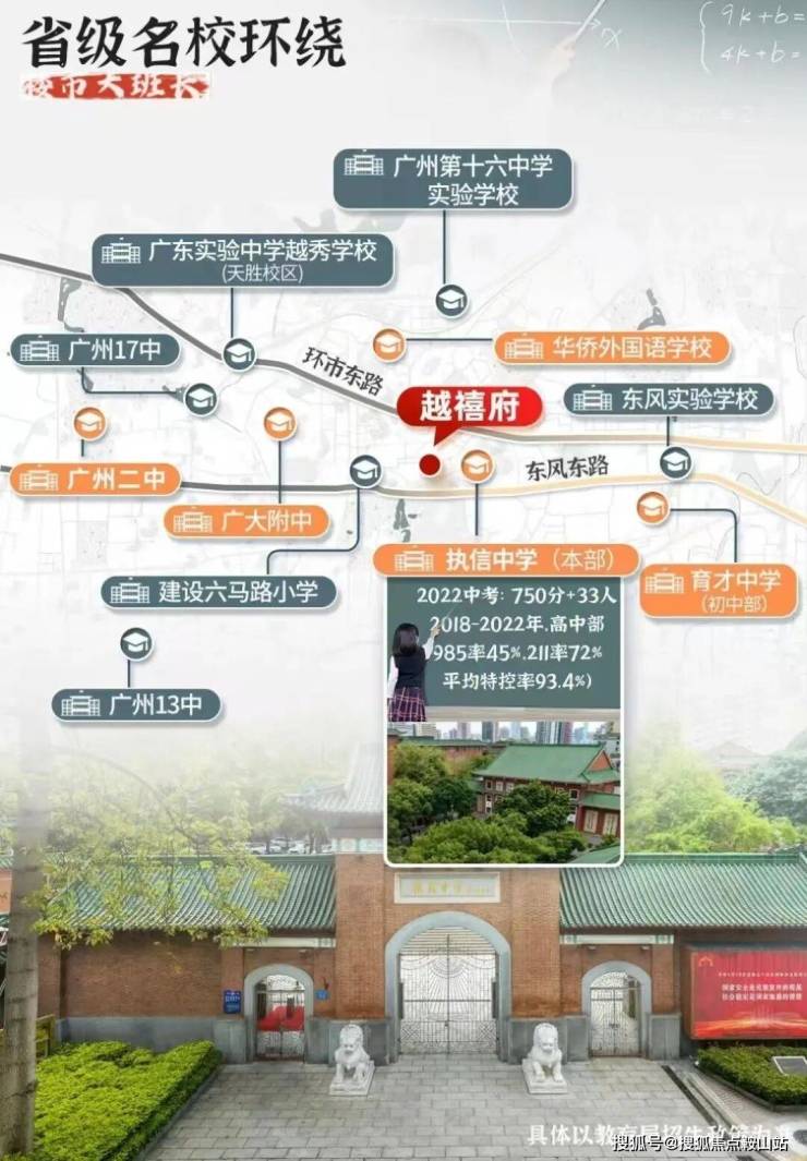 (根据2023年小升初报读指南参考)摇号对位10所中学,其中6所省级名校包括:执信中学本部(高中重本率99%,600分以上86%)、育才中学、华侨外国语学校、第二中学、广大附中、十六中学