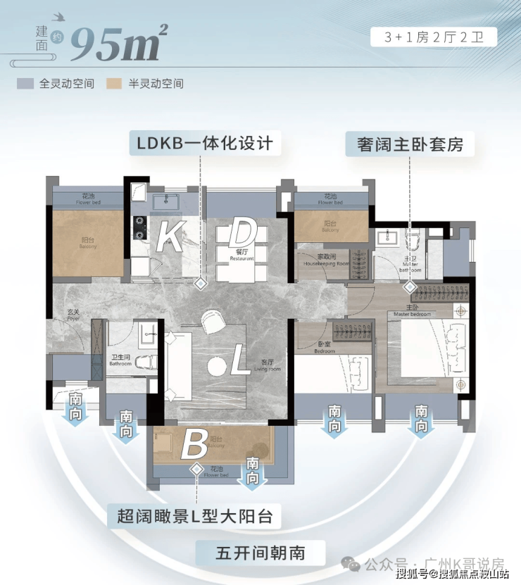 南向超大观景阳台,阔绰瞰景阳台,U型明厨,宽绰餐厨,盛载三餐四季