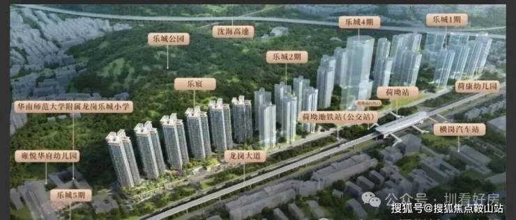 项目自带两所12班幼儿园(已开学),小学学区为华南师范大学附属龙岗乐城小学(距离约100米),初中学区划入园山实验学校和深圳北理莫斯科大学附属园山学校。华南师大附小已启动扩建工程,将由现状24班小学改扩建为36班九年一贯制学校,预计2026年9月正式招生。