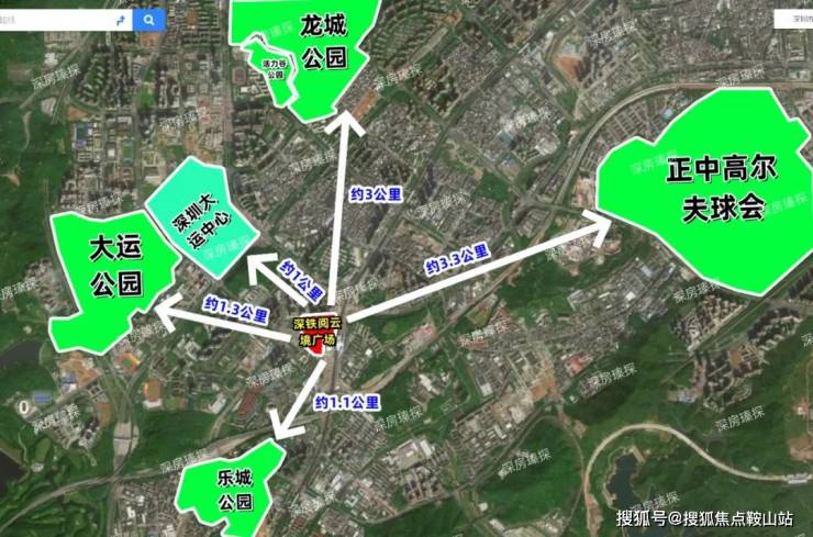 文娱公园配套:在深铁阅云境广场距离1公里处有深圳大运中心,内设有体育馆,体育场,游泳馆,足球场,400米环形跑道,每年有多场明星演唱会就是在大运体育馆举行;在周边1.3公里范围内有大运公园,乐城公园等,约3公里范围有龙城活力谷公园,龙城公园等大型公园配套,非常适合闲时散步爬山,亲子时光,在约3.3公里处还有正中高尔夫球会,拥有36洞锦标赛级球场,不定期举行多项赛事活动。