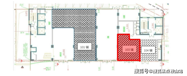 ⭐104号铺43.35㎡,实用面积40.02㎡
