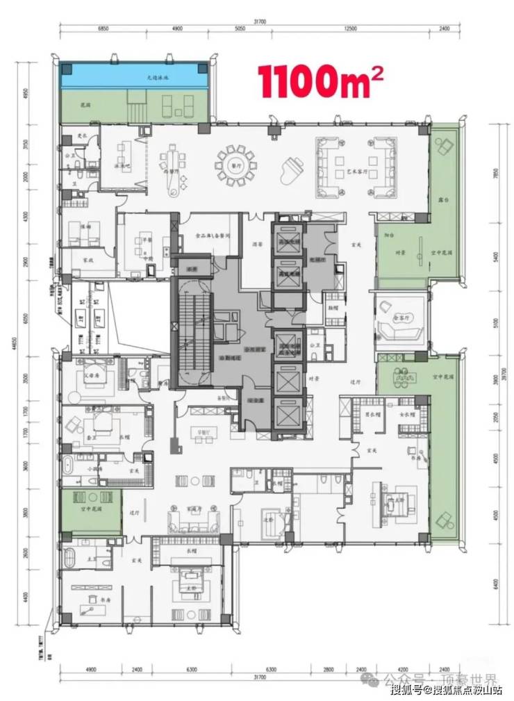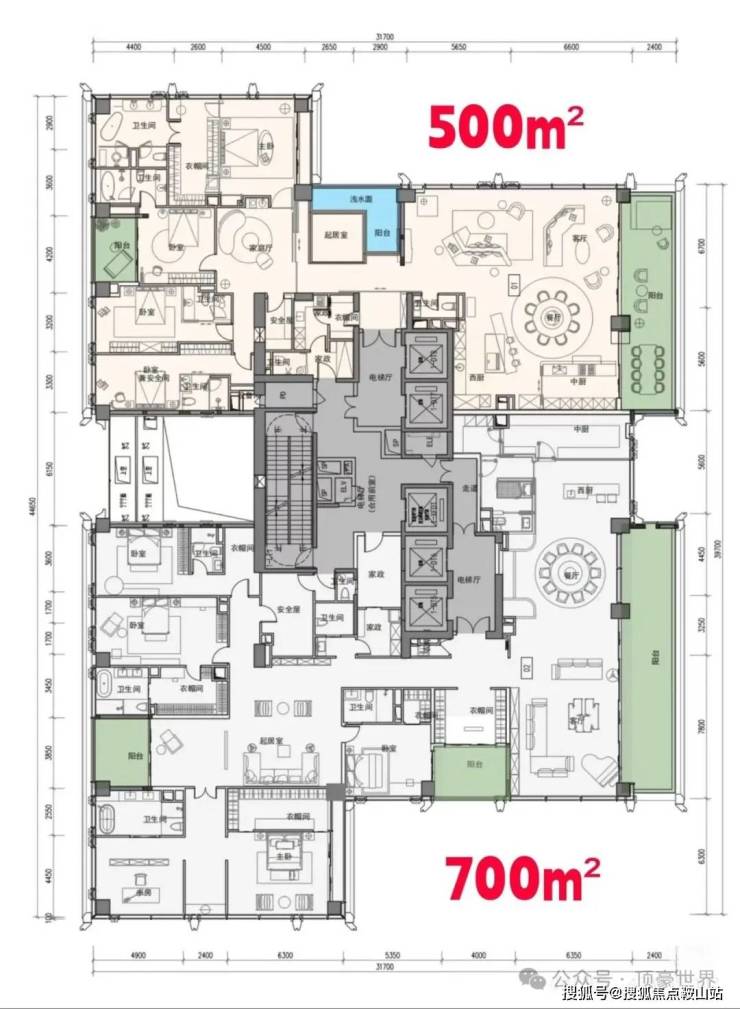 顶楼为整层不是复式,约1050㎡顶奢大平层仅两套;