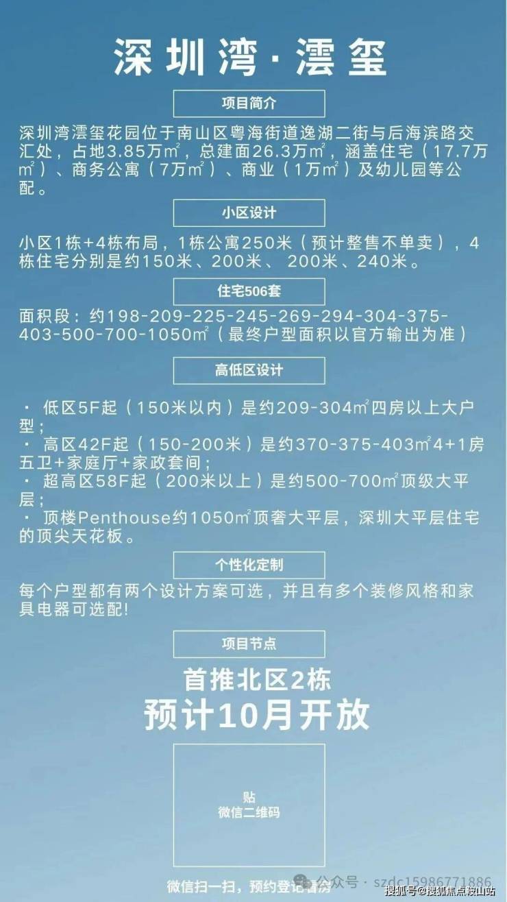 从土地稀缺性到产品硬实力,从精准户型分布到清晰价格梯度,深圳湾澐玺集齐了顶豪该有的所有特质。即刻预约,亲临样板间,触摸华润央企品质,抢占湾芯最后入场券!预约方式:需验资1000万锁定名额,公众号后台回复“深圳湾澐玺,扫一扫微信码获取独家置业分析+开盘折扣内幕! 专属顾问一对一接待,同步提供电子版户型图。