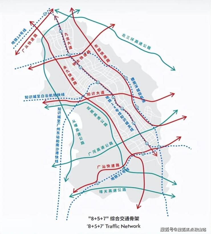 花莞高速无缝接驳城芯干道,约30分钟直达珠江新城,快速通达全城,规划条轨道条高速条快速路,多维立体交通,打造湾区1小时生活圈。