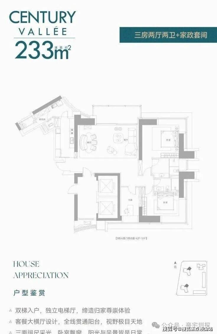 ▫️约233㎡|3+1房3卫双梯入户,横厅贯通阳台,三面采光,西北向望高尔夫景观