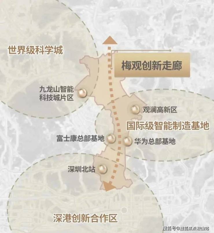 鹭湖中心城位于深圳”中优“”北拓“战略的重要节点,占位于“一圈一区三廊”发展格局的产值超万亿的数字经济圈,2019年观澜高新园已纳入国家高新园,成为深圳创新驱动核心引擎。