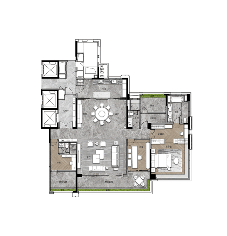 我们再来看看此次加推的268平的大面积户型,作为项目的旗舰,暗藏着哪些巧妙的设计?