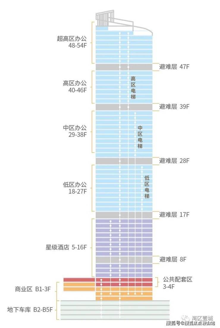 【层高】:标准层高4.2米,超高区(48F以上)4.5米
