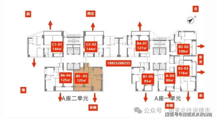 住宅梯户比:一单元四梯五户、二单元四梯四户