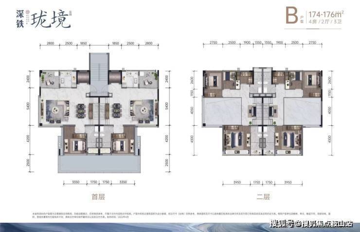 B户型 建面约174-176㎡ 4房2厅3卫