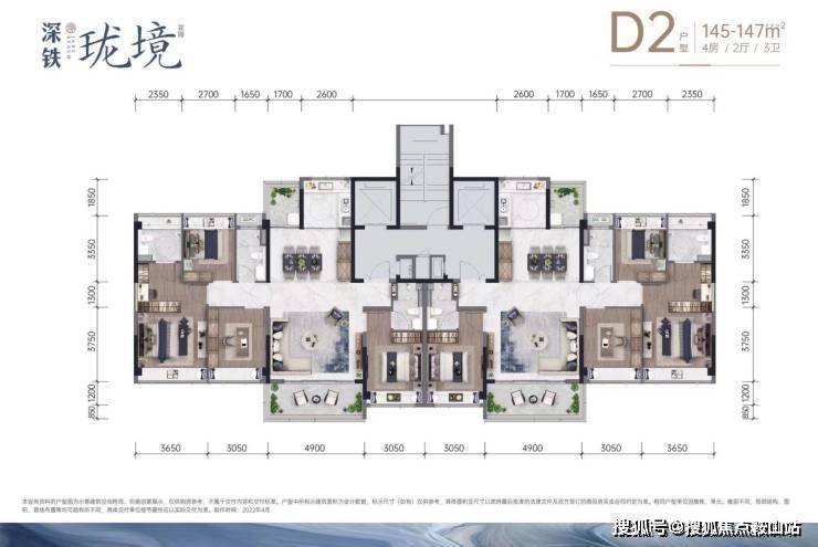 D户型 建面约145-147㎡ 4房2厅3卫