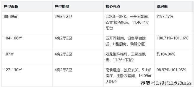 项目户型均按国标新规设计,得房率普遍超97%,部分户型可达104%,空间利用率极高,远超传统楼盘。