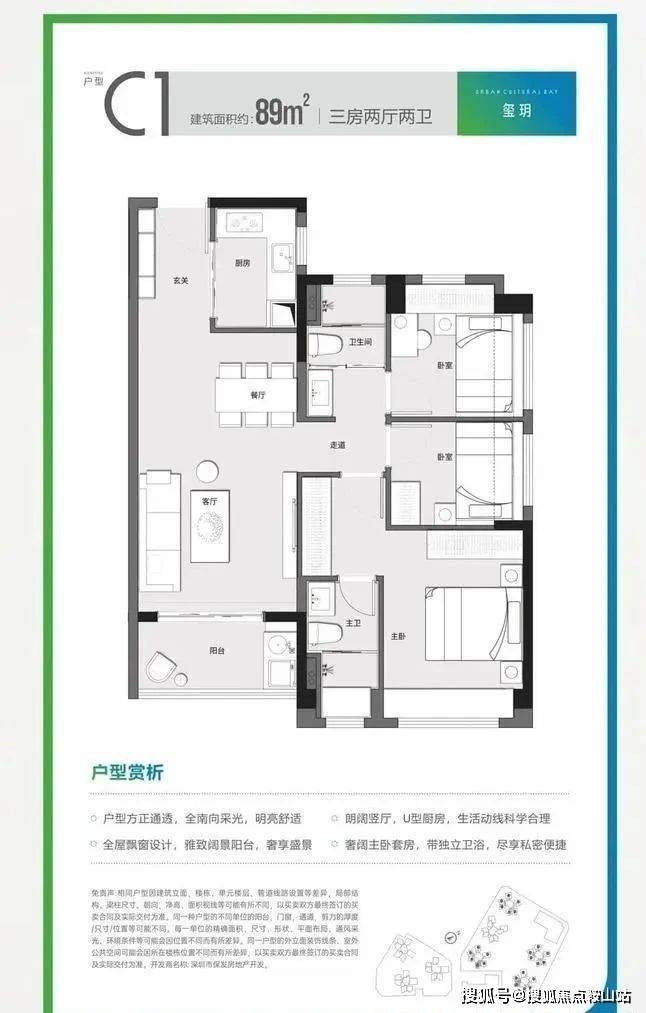 方正户型,通透舒居:户型方正,全明采光,科学动静分区;大面宽设计、阔绰景观阳台,将自然盛景融入日常;兼具雅致主卧套房,畅享生活的便捷私密;