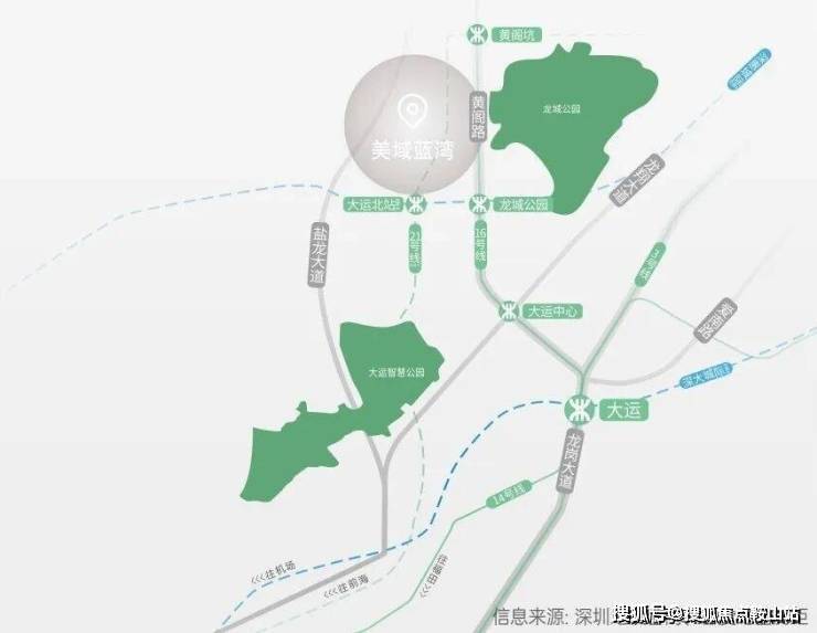 地铁:直线距离16号线龙城公园站约800米,两站直达大运枢纽站,接驳3/14号线和深大城际(建设中);直线距离21号线大运北站(规划中)约600米;快速连接全城。