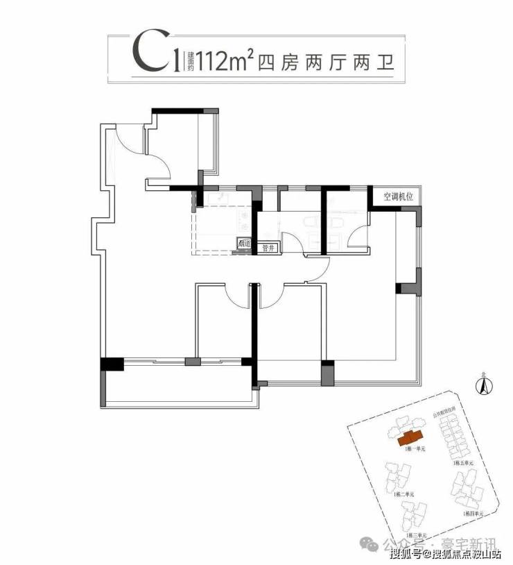 首发1栋1单元153套建面约89㎡竖厅动静分区三房两卫、89㎡竖厅双龙抱珠通透三房两卫、约112㎡竖厅动静分区四房两卫,备案单价3.5-4.4万,备案均价约4万,总价约312-493万。