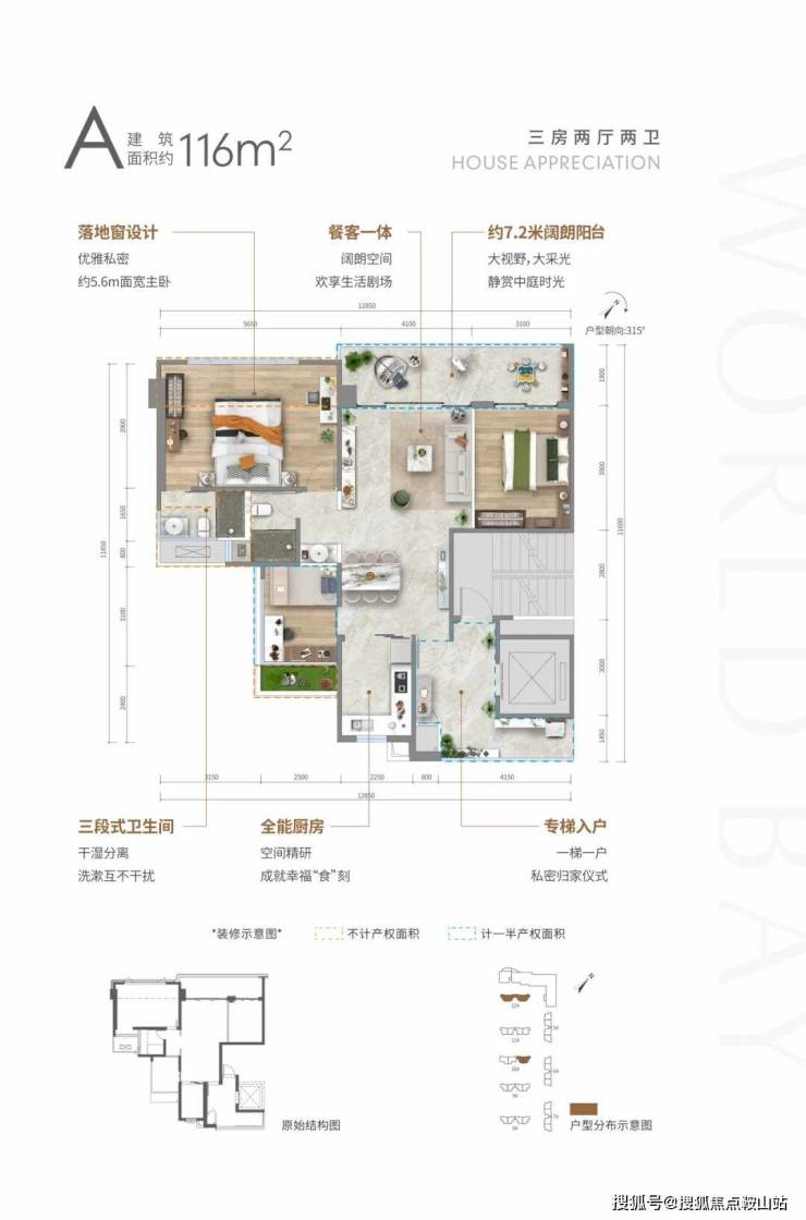 【纯板美宅,一梯一户私密归家】建筑面积约116-139㎡纯板式美宅,前后通透,双向采光,邀请阳光清风自然入户,约7.6米阔景阳台,尽赏公园曼妙美景。一梯一户,专属电梯入户,一键直达家门,私密、独享、尊贵,匹配层峯人居的归家仪式和舒适体验。★★★★★★ 116㎡三房两厅两卫 ★★★★★★