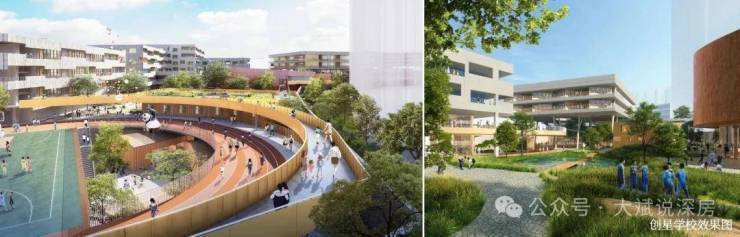 ②创星学校:直距项目约750m,全名为「龙岗区教科院附属实验学校」,是由华润置地代建的72班九年一贯制公办学校,也是龙岗首批高品质校园之一,已于2024年秋季开学;