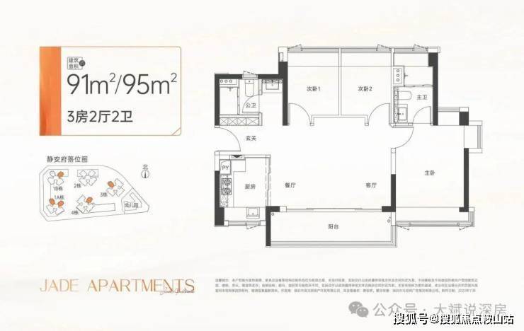 约95㎡三房2卫:大横厅、全明方正、通透布局,诠释生活空间的尺度与交互,三代同堂舒居优选。