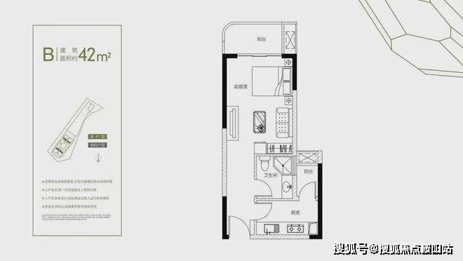 建筑面积约42㎡1房+1厅+1卫