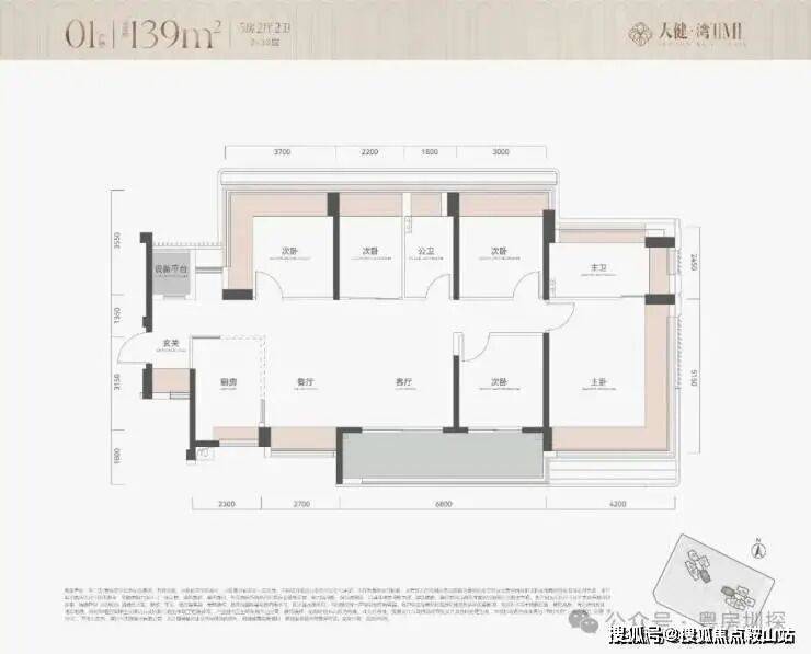 对比之前的113平户型,生生多了个房间,而且主卧尺度很大,开间和进深都超过了4米,双面采光,主卧进门独立衣帽间,具备一个次卧打通做大客厅的能力,新规户型优势很明显!