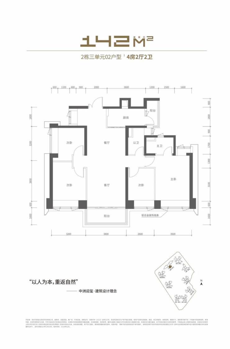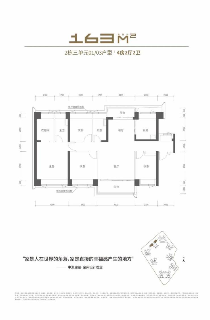 总房源共746套,其中:93-97㎡三房 304套,115-120㎡四房 152套,131-142㎡四房 198套,163㎡大四房 92套。