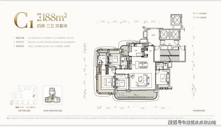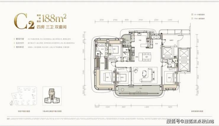 约188㎡(四房三卫双套间):宝中“六边形战士”。集核心地段、顶尖配套、实用空间、优质景观、央企品牌于一身,几乎没有短板,预计将成为竞争最激烈的户型。