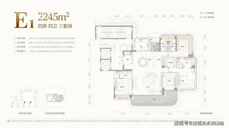 约260㎡(四房四卫三套间):项目“头牌”,全盘仅40套。采用创新的全景舱设计,拥有270°无遮挡环幕海景。专梯入户、十字前厅,仪式感与景观视野双双拉满。