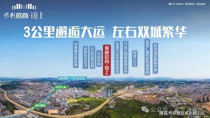 保利招商锦上位于天安数码城旁,深入深圳腹地,三面环深。5公里范围可直接享受龙岗大运、深圳平湖以及凤岗中心三大城市中心区所有配套。