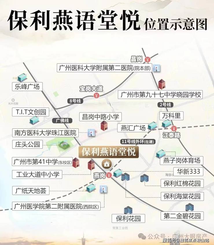 项目位于海珠区工业大道中的燕岗地铁站旁,地铁上盖项目(在建中的11号线+广佛线),坐落于工业大道中,背靠珠江后航道,傲立于海珠新活力文商旅融合圈与广州市"首个"后航道服务型制造创新带交汇的核心地带,海珠后航道将成为海珠未来唯一连片开发的豪宅板块。