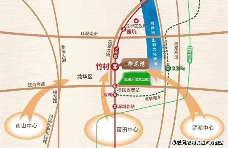 交通配套是项目最大亮点:距离地铁4号线竹村站仅100米,7站达深圳北站、13站直达福田中心。通过沈海高速、观澜大道等城市主干道,30分钟可达福田CBD。