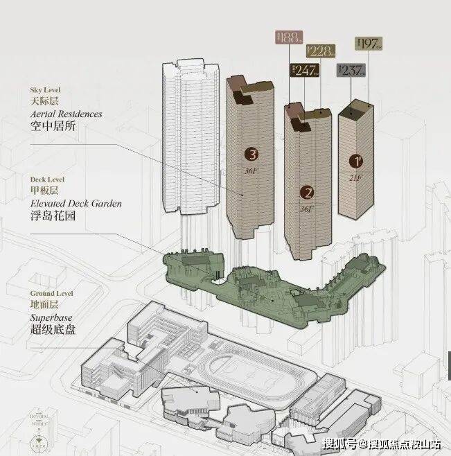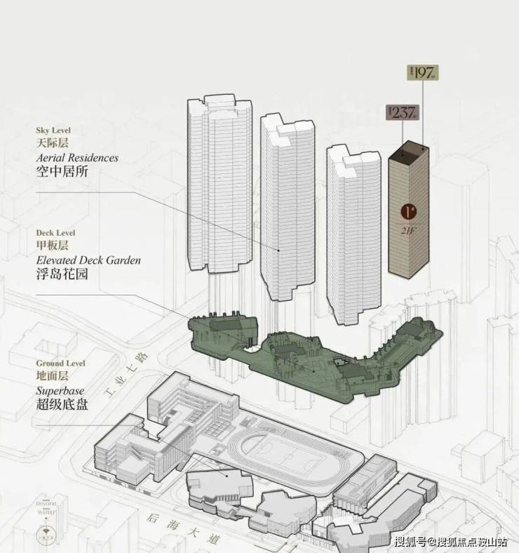 以“浮岛甲板”设计手法回应珍贵的土地资源,构筑立体多层次、超尺度的地标形象甲板之上,以立体分层、生态融合、全龄交互的静谧庭院花园。创造沉浸式的自然游沐场所,甲板之下,突破传统社区边界,构建开放式的超级底盘,用新的丰盈与仪式感迎接归家。