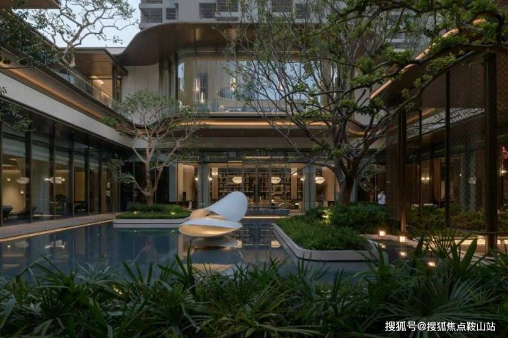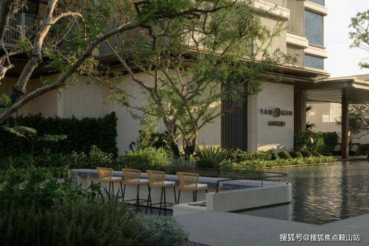 “玉苑春深花满枝,实景花园映日辉”。热带雨林的奢享庭院中,紫花风铃木阵列于回廊旁,点景油柑子与凤凰木交织成荫,大面积静面水景映衬风情感艺术构架。架空层与会客平台打破室内外界限,晨起听鸟鸣,暮时观星野,生活的诗意在自然中肆意生长。