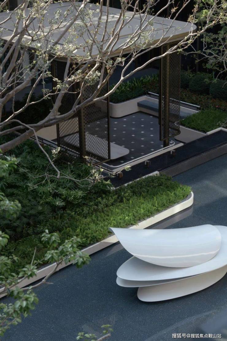 本次项目重点取玉中最具有代表的"蕴玉"色彩,如冰启时之色也,也是本次园林最具亮点材料:白冰玉。首饰化珠玉散落场地内部,近人尺度,玉小精致,散玉微澜,落于屏风上,地面上,座椅上,景墙上,让玉无处不在,彰显三亚天珺的与众不同。项目以“稀世、珍藏、极致”为内核,从材质到细节皆见匠心:海浪灰石材铺就归家小径,白冰玉玉石镶嵌景墙,智能灌溉系统隐匿于黎锦纹屏风之后。植物配置更显精妙——多花紫花风铃木,铁冬青,油柑子,乌桕,特色杂木乌桕,错落有致,四季流转间,绿野仙踪与热带风情交替上演。