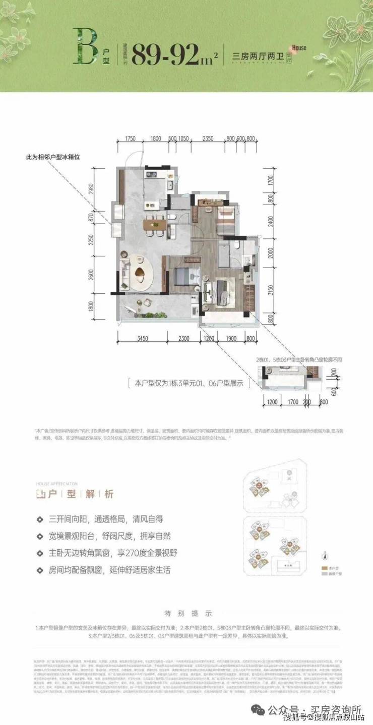 建面约92平3房的阔绰度更是惊人,约105%的得房率,阳台面积超10平,基本和市面主流170平的房子相当。