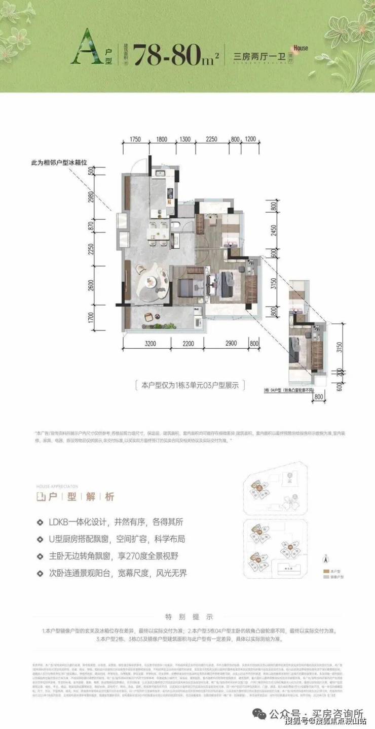 项目在2025年五一期间首推北地块1栋3单元,约80-92㎡3房,共195套