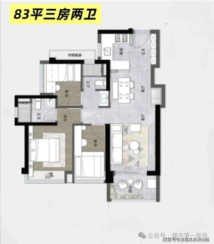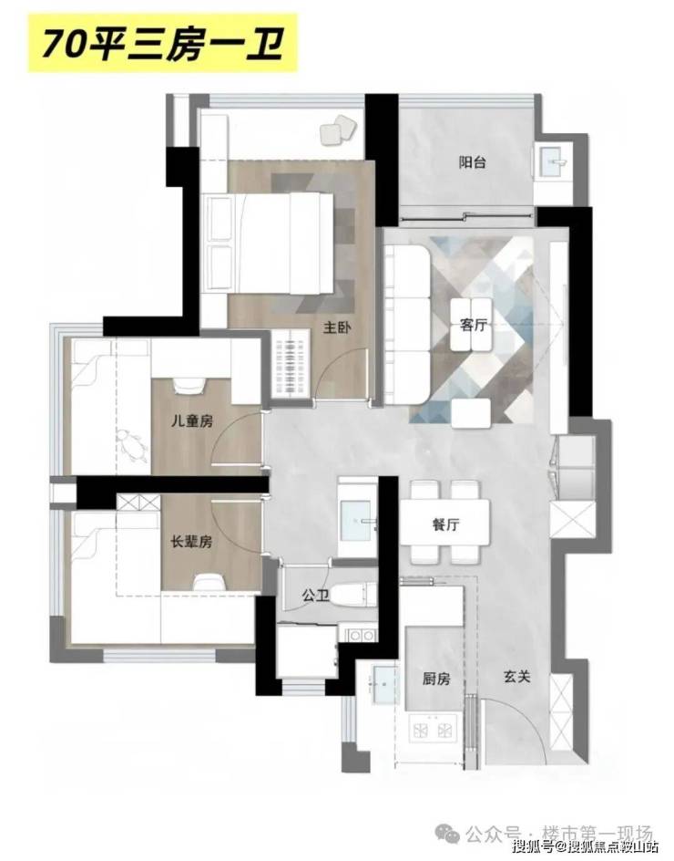 位于龙华大浪的卓越上下横朗城市更新单元,目前已经命名为卓越琅奕府,计划将在2026年4月取证入市,12栋50层住宅楼,首推一期有6栋楼预计600套,目前曝光出的面积段是70-98㎡的3-4房户型,项目为新规户型,得房率预计100%左右,其中70㎡做3房1卫(附户型图)。3梯6以及3梯7户设计,