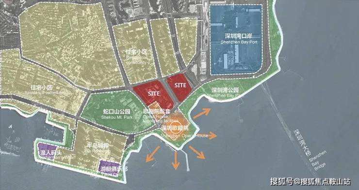 中信东角头项目位于后海大道与望海路交界东北角,地块三面环海。