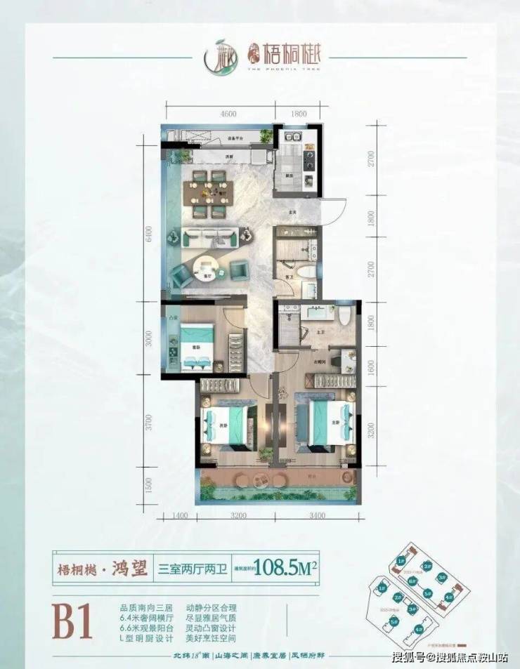 建面约108-133m三房/四房,慢享山海之间宜居康养度假生活,室内空间由HPID堂朝天意高端设计。