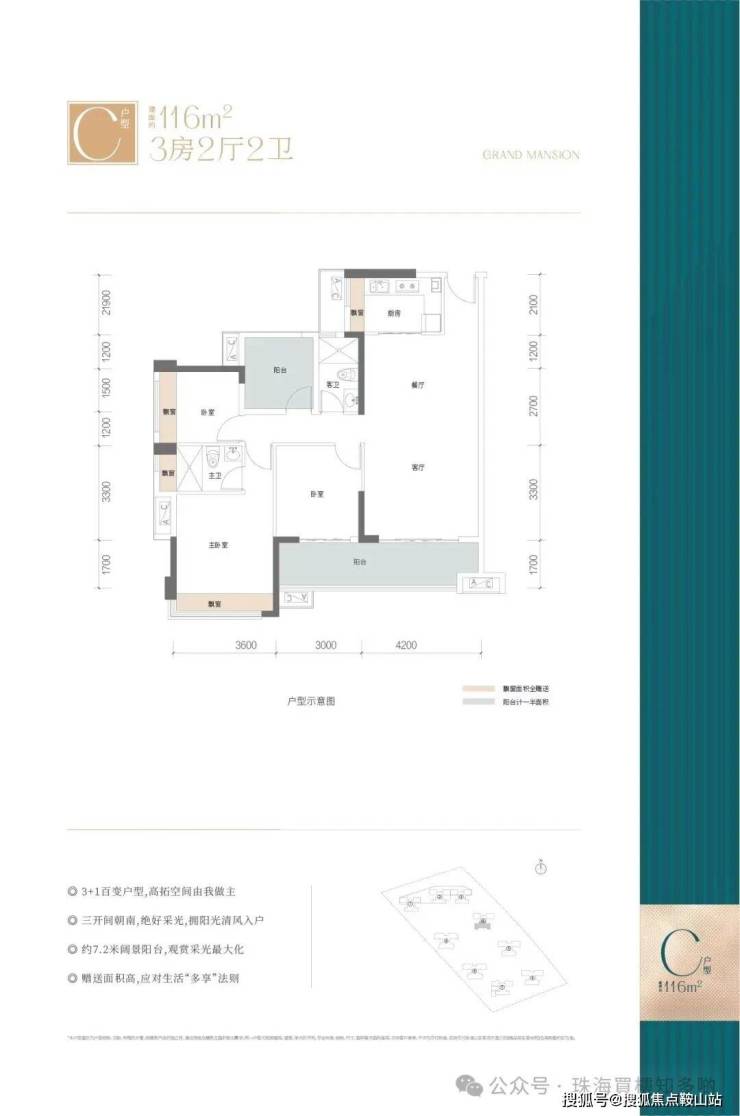 户型优势:赠送约16方,全南户型,拥有7.2米超大阳台,四房设计户型方正,主卧突出视野更佳。