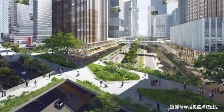 3、立体交通——未来片区多层次、多维度的立体绿色出行体系。双地铁上盖,市政规划的空中连廊系统,“0”距离接驳全城。