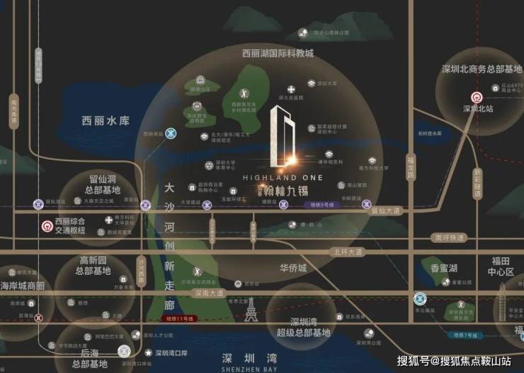 多维立体交通 国际化枢纽路网留仙大道正席,紧邻地铁5号线塘朗站,4/5/7线3轨环绕,毗邻“三纵五横”主干道,瞬息通达全城。西丽高铁站(建设中)、深圳北站两大枢纽环绕,拥有世界交通能级。