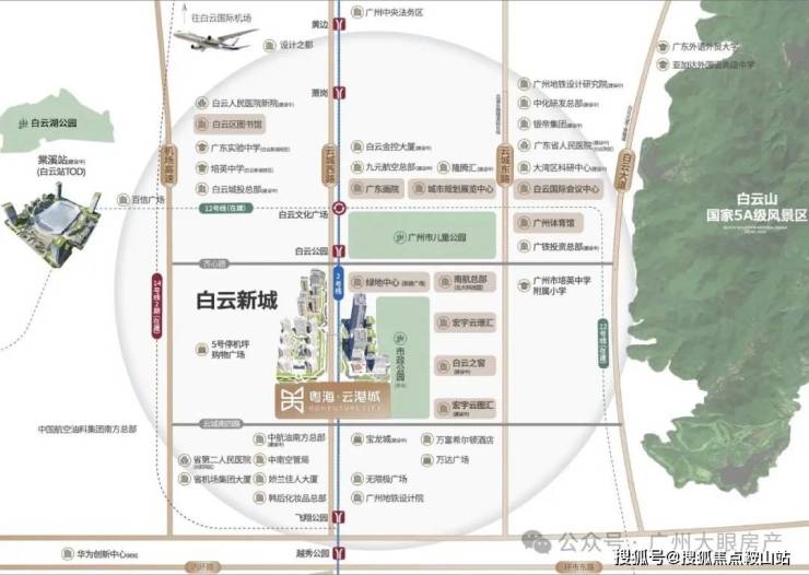 项目紧邻广州儿童中心、白云国际会议中心等六大省市级地标建筑,南航三大总部、无限极总部、地铁设计院总院等总部大楼环绕在旁,共同构筑了一个高端、商务、国际化的生活圈层。