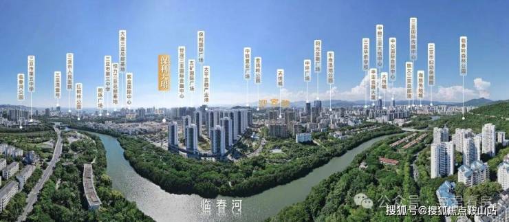 · 自然资源:三亚河、临春河双河环绕,毗邻金鸡岭公园、临春岭森林公园,山脉起伏、绿脉渗透,彰显东方艺术审美“山-城-河”的对话关系。