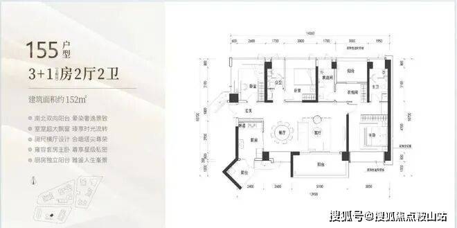 105㎡:竖厅格局,客厅与卧室连通超大阳台,LDK一体化设计,主卧室270度转角飘窗,看城市景观,主要朝向为西南和东南