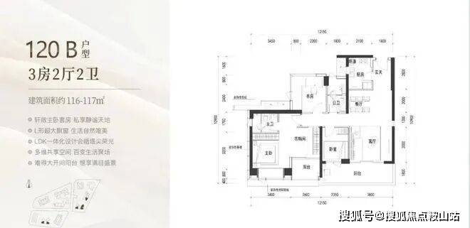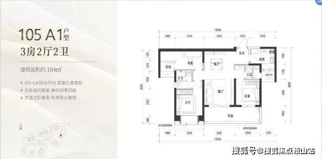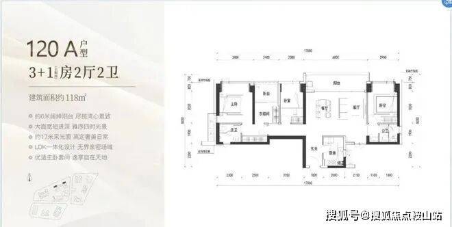 120㎡:客厅与卧室连通9.6㎡超大阳台,主卧带5.2㎡衣帽间,还有观景小阳台,主要为东南和西南朝向