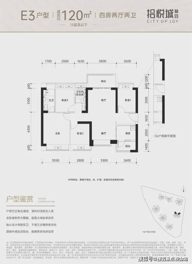 115平~118平全明采光户型,四卧室、厨房、两卫、客餐厅等均设计超大采光面,带来明亮通透的舒适居感,客餐厅以横厅布局,让家庭居住空间的视野范围和活动区域扩大,加强家庭成员之间的情感交流;不论是三代同堂的天伦之乐,亦或是四口之家的温馨时刻,皆能一步到位。