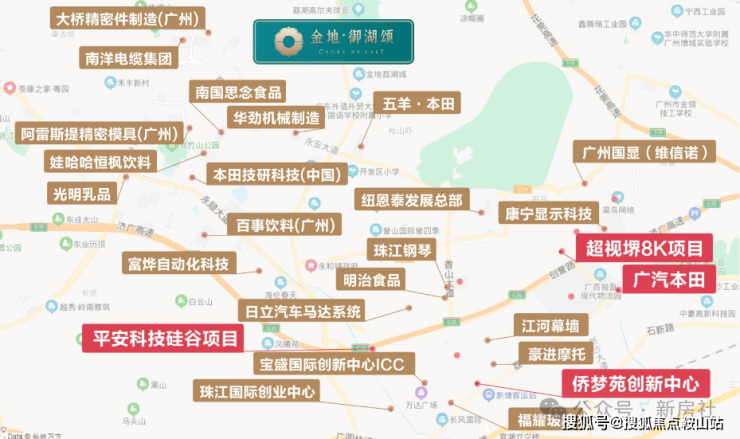 金地·御湖颂毗邻的增城技术开发区,已吸引了超视堺8K项目、维信诺模组生产线、广州本田增城工厂、北汽华南基地、平安(增城)科技硅谷等项目落地。形成千亿级信息科技产业、千亿级汽车产业、千亿级金融科技产业三大千亿产业集群,与知识城、科学城等区域共同组成广深科技创新走廊上的六大核心产业群。